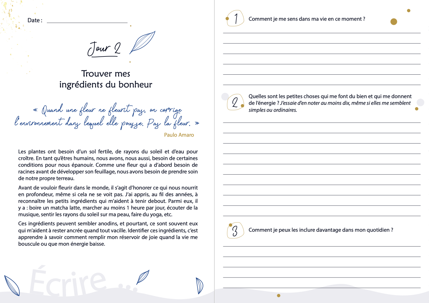 Je sais qu’écrire et répondre à ces questions m’a aidée à transformer ma vie, pas à pas.